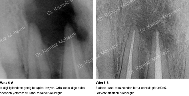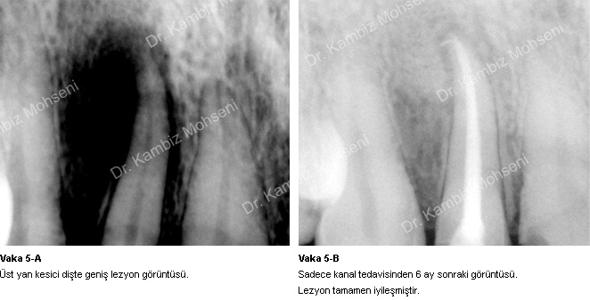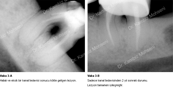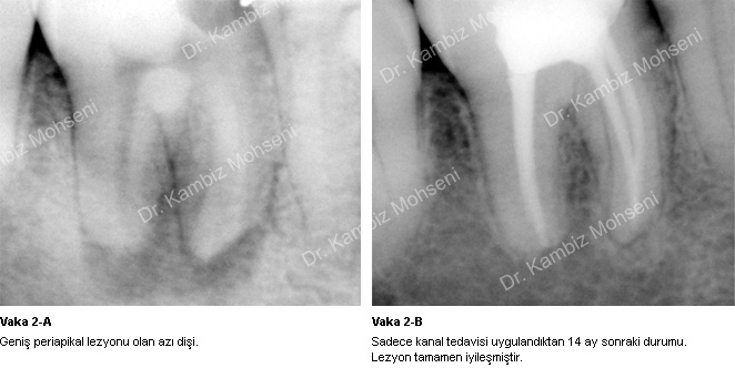 İltihabın sebebi kök kanal sistemindeki mikroorganizmalardır. Uygun bir kanal tedavisi ile ortam mikroorganizmalardan arındırılırsa iltihabın iyileşme şansı oldukça yüksektir. Bu konuyla ilgili örnek vakaları inceleyebilirsiniz;
